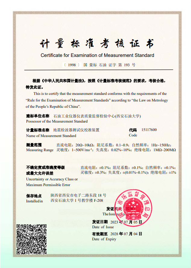 计量标准考核证书